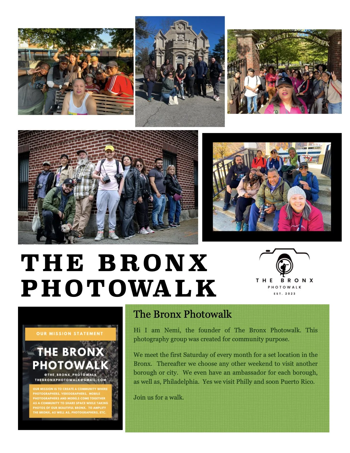 Our Instagram platform to is to promote your work from our walks, but you must first post, tag and mention @the_bronx_photowalk as well as hashtag us #TheBronxPhotowalk. It is how we receive notification of your work.